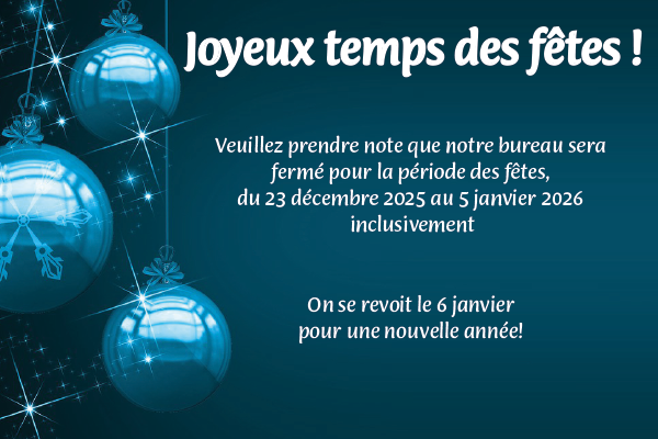 VOICI NOTRE HORAIRE POUR LA PÉRIODE DES FÊTES